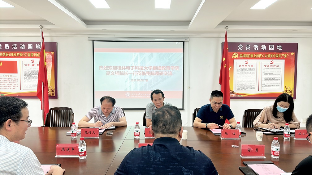 2023年5月17日,桂林电子科技大学继续教育学院高文强院长一行到九游首页调研交流。学院领导及相关科室负责人参加交流会。