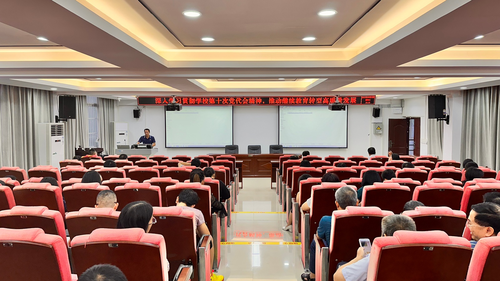 2023年9月12日,继续教育学院在301教室召开全院大会,深入学习贯彻学校第十次党代会精神。