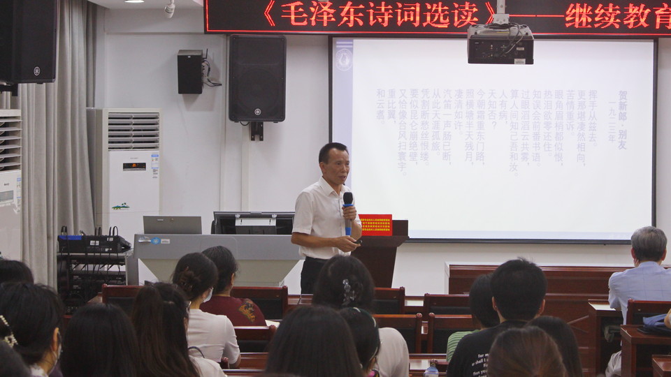 2022年6月22日晚,继续教育学院党支部与农学院有关党支部联合举办《毛泽东诗词选读》主题党日活动。主题党日活动由继续教育学院党支部书记苏兆成同志主讲。(陈昊宇/图)