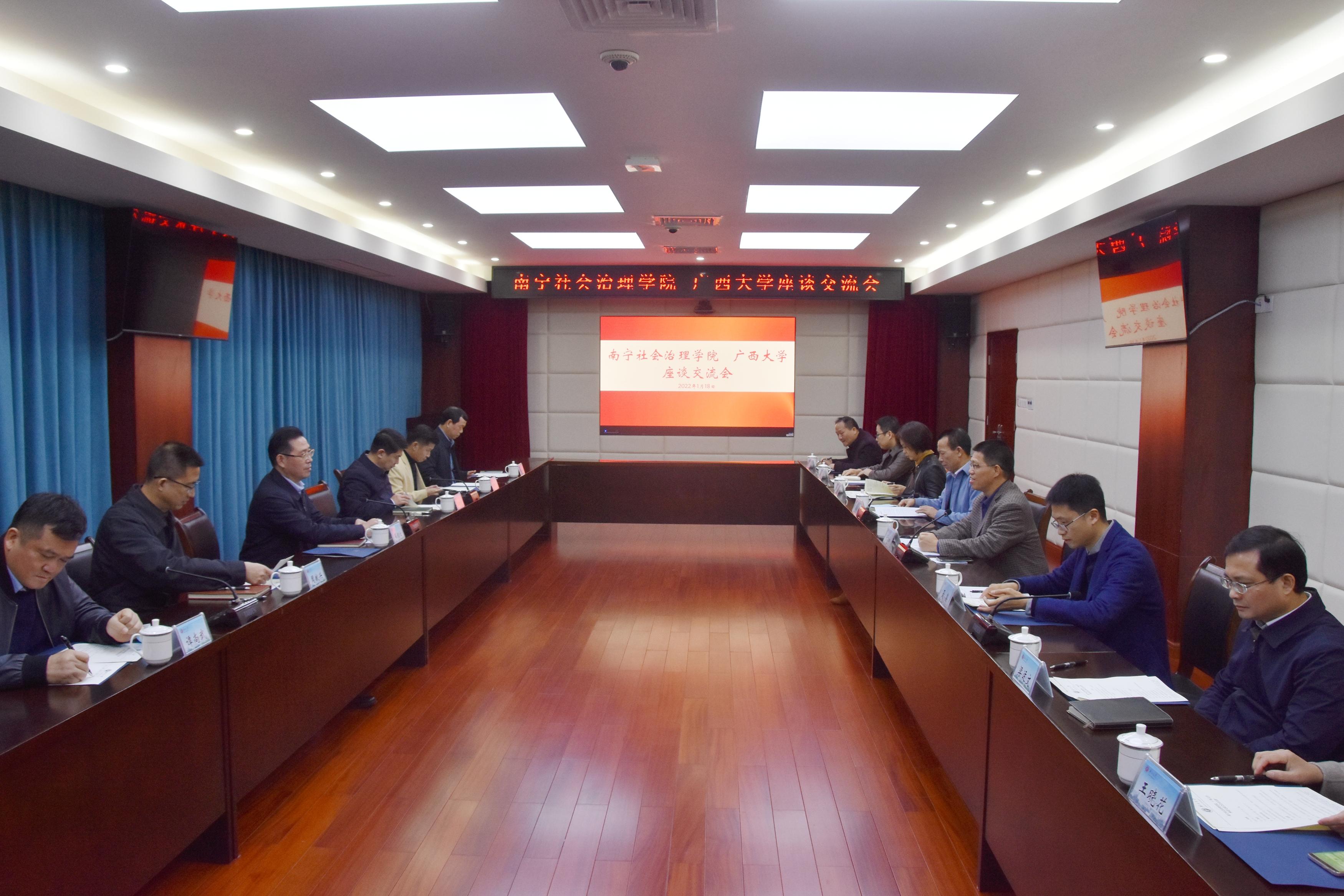 会议听取了南宁市党委政法委、九游九游(中国)关于南宁市社会治理学院建设背景、建设历程、建设模式、工作开展情况及人才培养等相关情况介绍。与会人员就如何在南宁社会治理学院取得成就的基础上共同推动成立广西社会治理学院进行了深入交流。