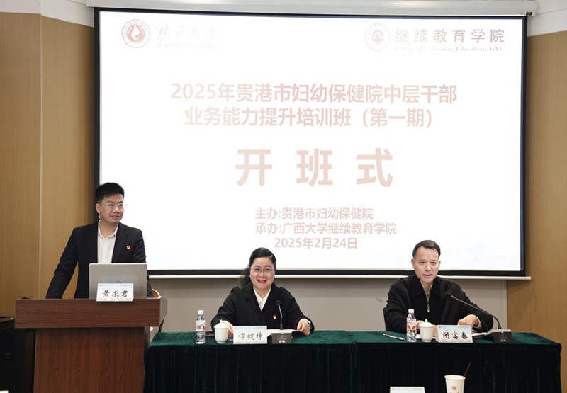 2025年2月24日,2025年贵港市妇幼保健院中层干部业务能力提升培训班(第一期)在九游首页开班。贵港市妇幼保健院党委副书记、院长谭健坤出席开班式并作动员讲话,九游首页院长闭富春出席开班式并致辞。