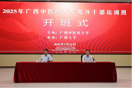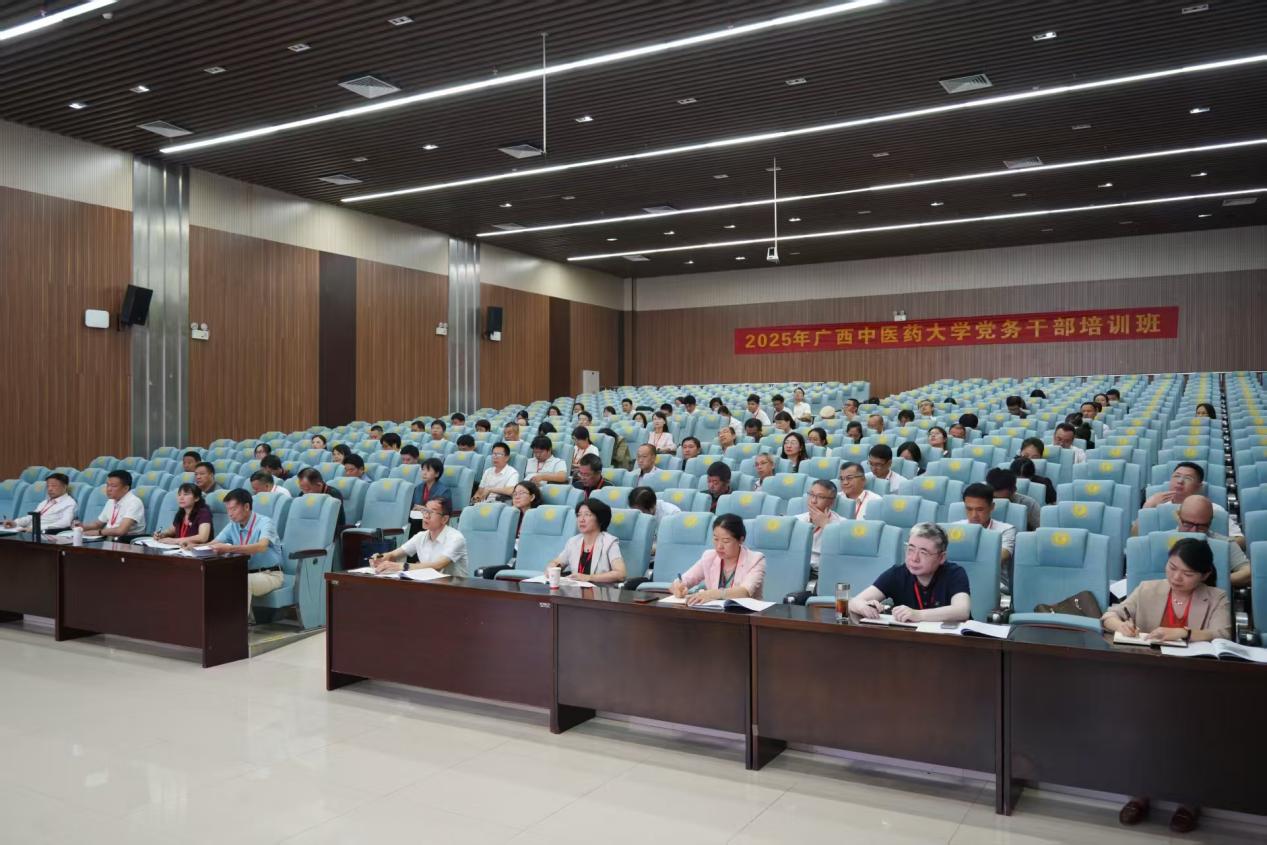 5月24日下午,由广西中医药大学主办、九游首页承办的“2025年广西中医药大学党务干部培训班”在我校资源环境与材料学院123报告厅举行开班式。校党委书记李国忠出席开班式并讲话。本次培训班为期5天,来自广西中医药大学二级学院党委书记、组织员、党支部书记共99人参加培训。