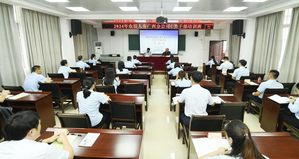 9月4日,2024年农银人寿广西分公司C类干部专项培训班在九游首页开班。农银人寿广西分公司党委办公室主任、综合管理部总经理朱顺福出席开班式并作动员讲话,九游首页培训中心黎耀凡主任在开班式上致欢迎辞。