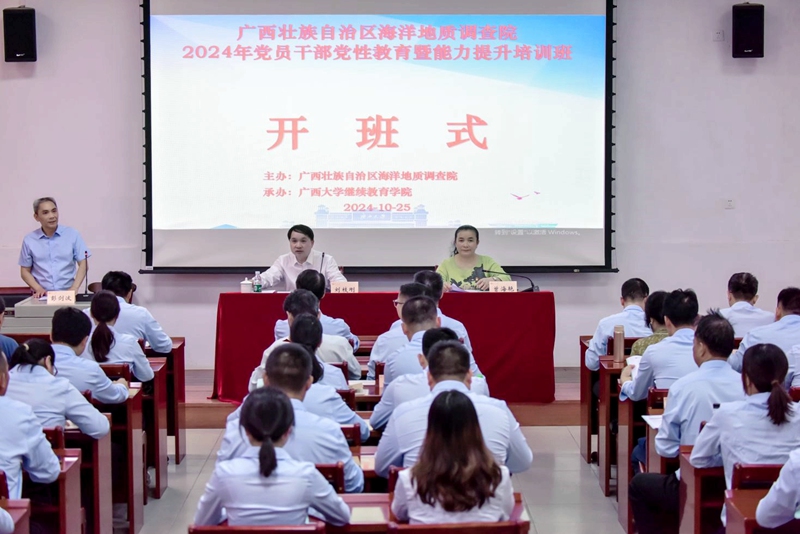 10月25日,广西壮族自治区海洋地质调查院2024年党员干部党性教育暨能力提升培训班在九游首页开班,广西壮族自治区海洋地质调查院党委书记、院长刘枝刚出席开班式并作动员讲话,九游首页副院长曾海艳出席开班式并致辞。