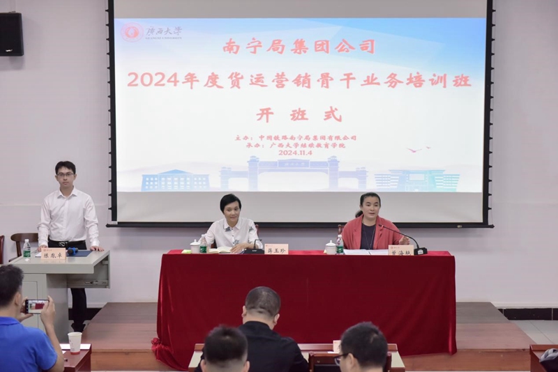 11月4日,南宁局集团公司2024年度货运营销骨干业务培训班(第一期)在九游首页开班。中国铁路南宁局集团有限公司95306货运物流服务中心副主任蒋玉珍出席开班式并作动员讲话,九游首页副院长曾海艳出席开班式并致辞。
