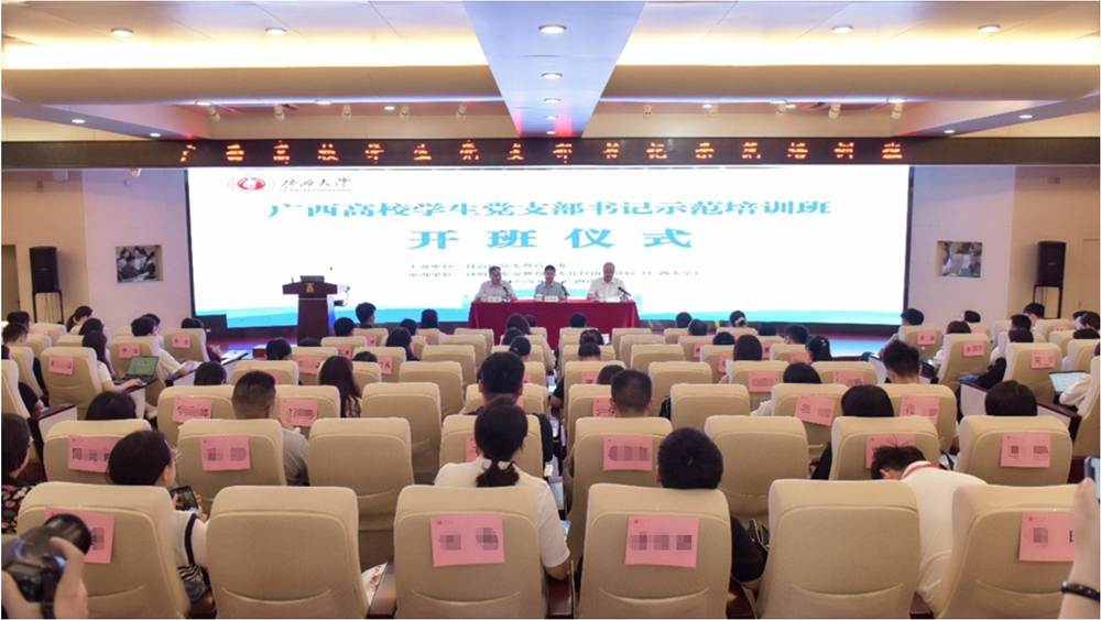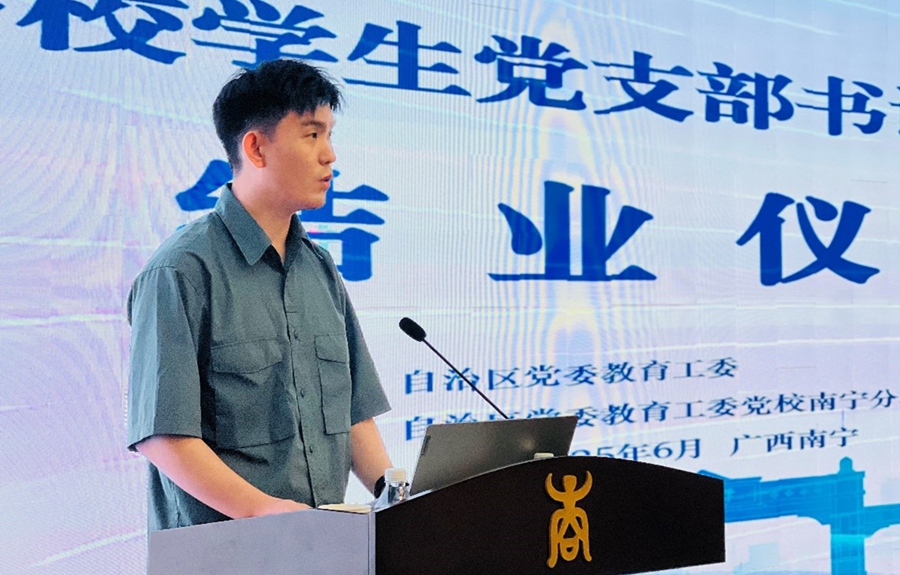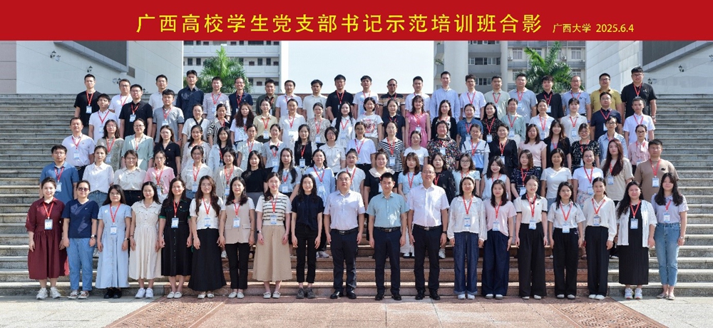 2025年6月3日至6日,由自治区党委教育工委主办、自治区党委教育工委党校南宁分校(广西大学)承办,九游九游(中国)协办的广西高校学生党支部书记示范培训班在广西大学顺利举办。自治区党委教育工委组织部四级调研员陈赐军、广西大学党委组织部副部长李道洋出席开班仪式并讲话,九游九游(中国)副院长徐华主持开班仪式。来自全区各高校的100名学生党支部书记参加培训,通过专题教学、现场观摩、经验分享、座谈交流等形式,深入探讨新时代高校学生党建工作创新路径,为提升基层党组织战斗力注入新动能。