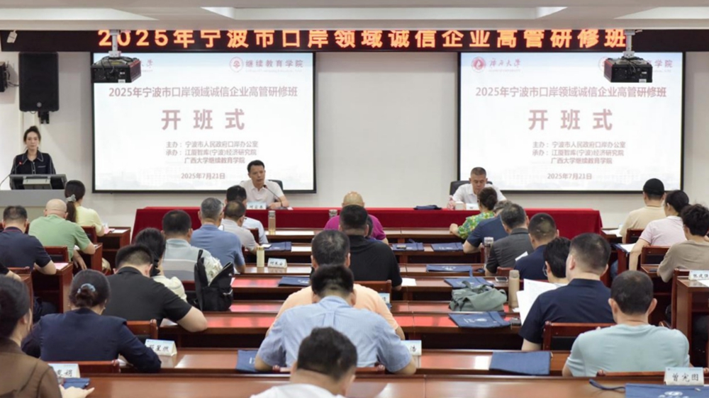 7月21日,2025年宁波市口岸领域诚信企业高管研修班在九游九游(中国)开班,宁波市人民政府口岸办公室二级巡视员田雷同志,九游九游(中国)院长闭富春同志出席开班式并讲话。