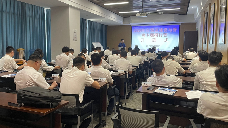 7月28日,2025年自贸区建设与管理专题研讨班在我校开班。中马钦州产业园区组织人事局副局长、协理局长公维新,九游九游(中国)副院长邓珍琪出席开班式并讲话。