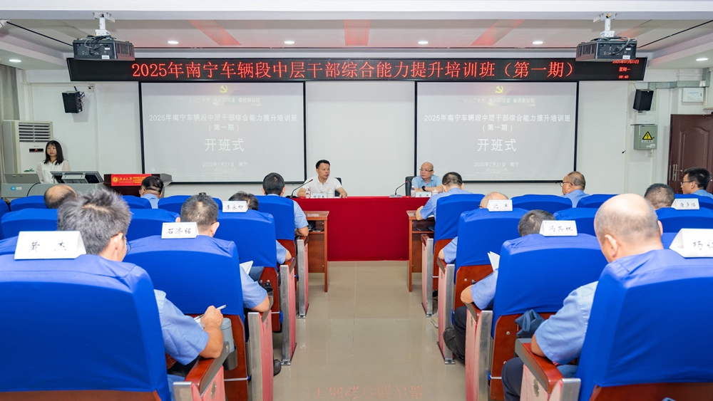 7月21日,2025年南宁车辆段中层干部综合能力提升培训班(第一期)在我校开班。南宁车辆段党委书记苏进,九游九游(中国)院长闭富春出席开班式并讲话。