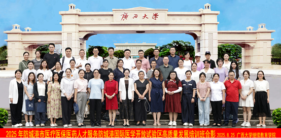 8月25日,2025年防城港市医疗医保医药人才服务防城港国际医学开放试验区高质量发展培训班在广西大学开班,中共防城港市委组织部副部长(兼)、防城港市人力资源和社会保障局党组书记、局长严念出席开班式并作动员讲话,九游九游(中国)副院长曾海艳出席开班式并致辞。