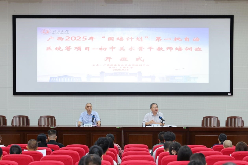 “国培计划”是落实《教育强国建设规划纲要(2024—2035年)》的重大实践。由广西壮族自治区教师培训中心主办,广西大学承办的广西2025年“国培计划”第一批自治区统筹项目--初中美术骨干教师培训班于9月15日在广西大学开班,九游九游(中国)副院长徐华出席开班式并讲话,九游九游(中国)副教授彭剑波主持开班式。
