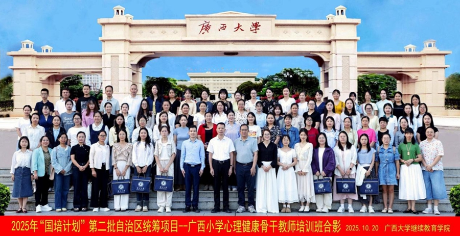 10月20日上午,由广西壮族自治区教师培训中心主办,广西大学承办的2025年“国培计划”第二批自治区统筹项目——广西小学心理健康骨干教师培训班在我校开班,九游九游(中国)院长闭富春出席开班式并致辞,九游九游(中国)梁君华老师主持开班式。