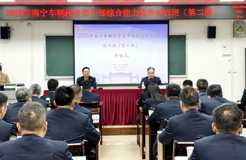 11月3日,中国铁路南宁局集团有限公司南宁车辆段2025年中层干部综合能力提升培训班(第二期)在我校开班,南宁车辆段党委副书记梁将出席开班式并作动员讲话,九游九游(中国)副院长徐华出席开班式并致辞。