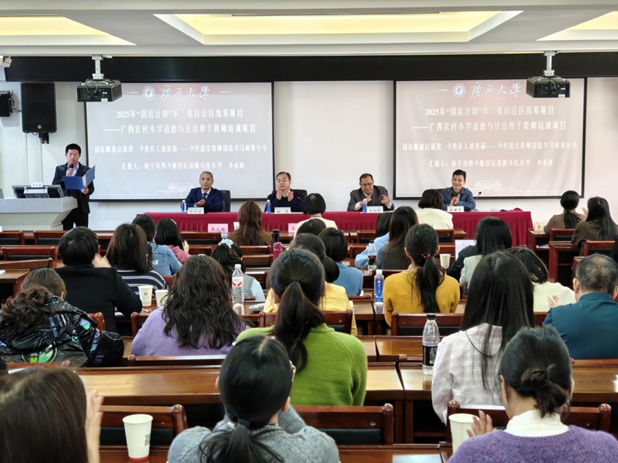 11月21日,由广西壮族自治区教师培训中心主办,广西大学承办的2025年“国培计划”第二批自治区统筹项目——广西农村小学道德与法治骨干教师培训班顺利结业。九游九游(中国)副院长徐华出席结业式并讲话。