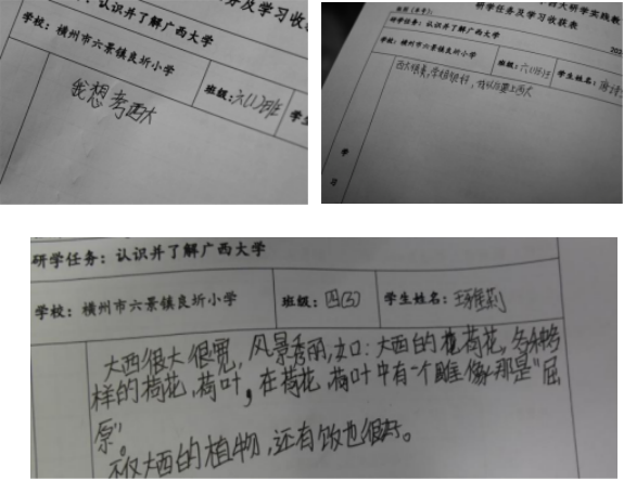 【未来之约】 返程前,同学们铭记下了对西大的美好印象以及未来考上西大的心愿。作为自治区首批中小学生研学实践教育基地,广西大学此次特别设计的分龄化课程体系,将大学精神具象化为可感知、可参与的实践模块,为乡村学子推开了一扇眺望未来的窗口。