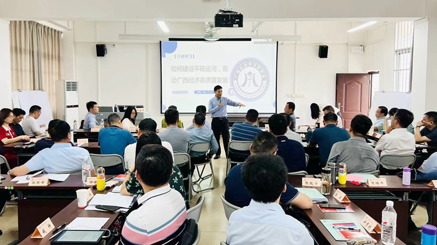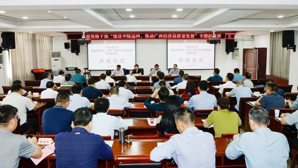 为了深入贯彻刘宁书记“以平陆运河工程建设为牵引,有效衔接西部陆海新通道建设,科学谋划好运河经济带产业布局和建设,充分发挥平陆运河的经济效益、社会效益、生态效益、开放效益”指示精神,加快发展向海经济、建设海洋强区,主动融入和服务国家新发展格局、参与建设海洋强国的重要使命,2023年5月15日至5月19日,由中共广西壮族自治区委员会组织部主办,中共广西壮族自治区委员会直属机关工委和九游九游(中国)承办的广西处级干部“建设平陆运河,推动广西经济高质量发展”专题研修班在广西大学举办。来自广西区党委办公厅、广西区人大办公厅、广西区发展和改革委员会、广西区财政厅、广西区交通运输厅等单位的处级领导共46人参加专题研修班。