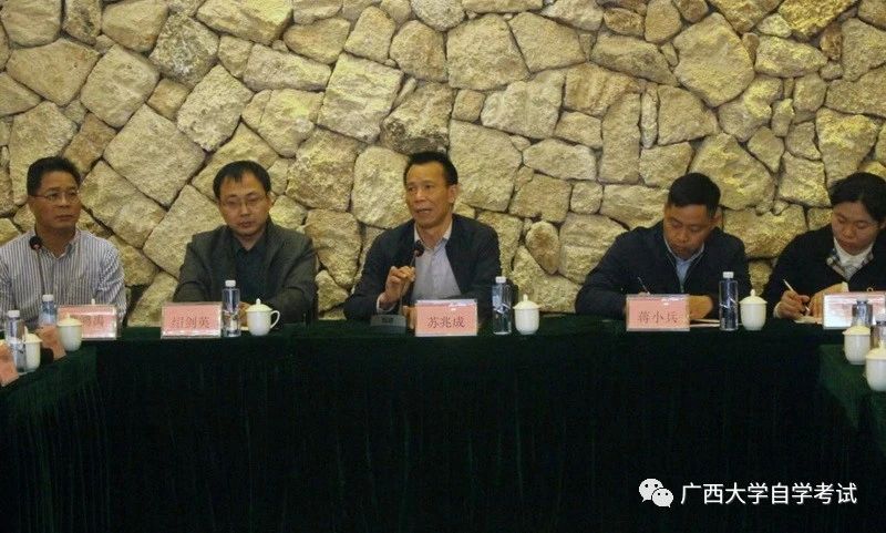 会议由苏兆成院长致辞,苏院长在致辞中深入分析了全区的自考形势,用二次“长征”作比喻,鼓励与会各方团结协作,奋力开拓自考办学新局面。自考中心梁永全主任就我校的自考管理及规划作主旨发言。